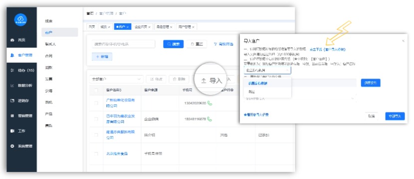 小太阳 CRM 支持通过 Excel 表格 批量导入客户数据,