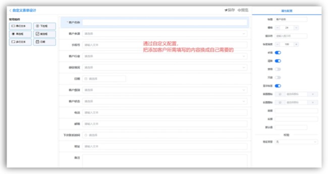 客户姓名 / 联系人;手机号 / 电话;公司名称;客户来源;跟进状态;负责人 / 销售人员;备注信息等